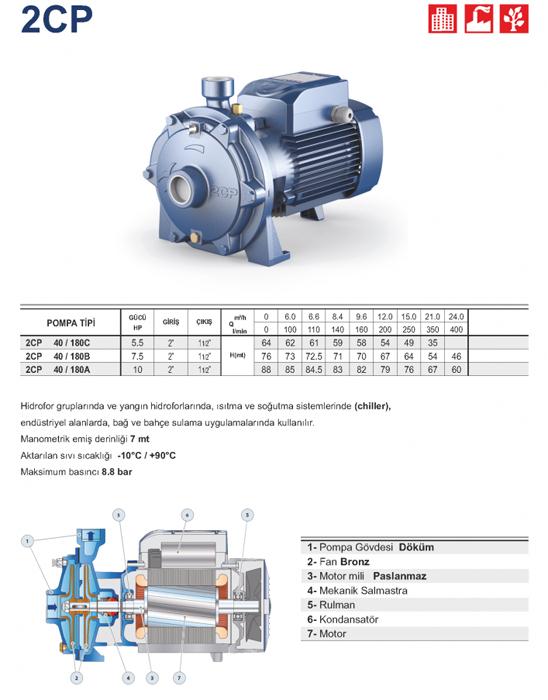 2CP Serisi - Çift Fanlı Santrifüj Pompalar