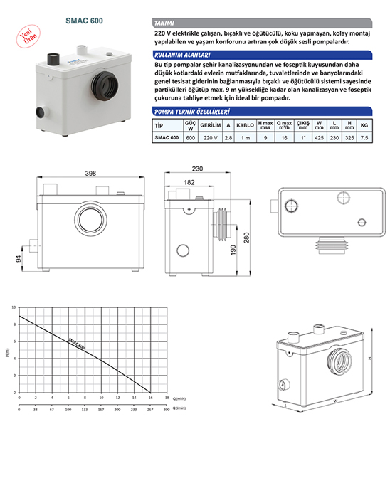 Ters dubleks bodrum kat veya merdiven altı uygulamalar için ideal bir çözüm sunan öğütücülü bıçaklı tahliye pompası Kolay kurulumu sayesinde yaşam standardının kalitesini artıran koku yapmayan aşırı yüklenmeye karşı kendinden termikli 220 V elektrik ile çalışan kendinden flatörlü otomatik ve sessiz çalışan pompalardır.